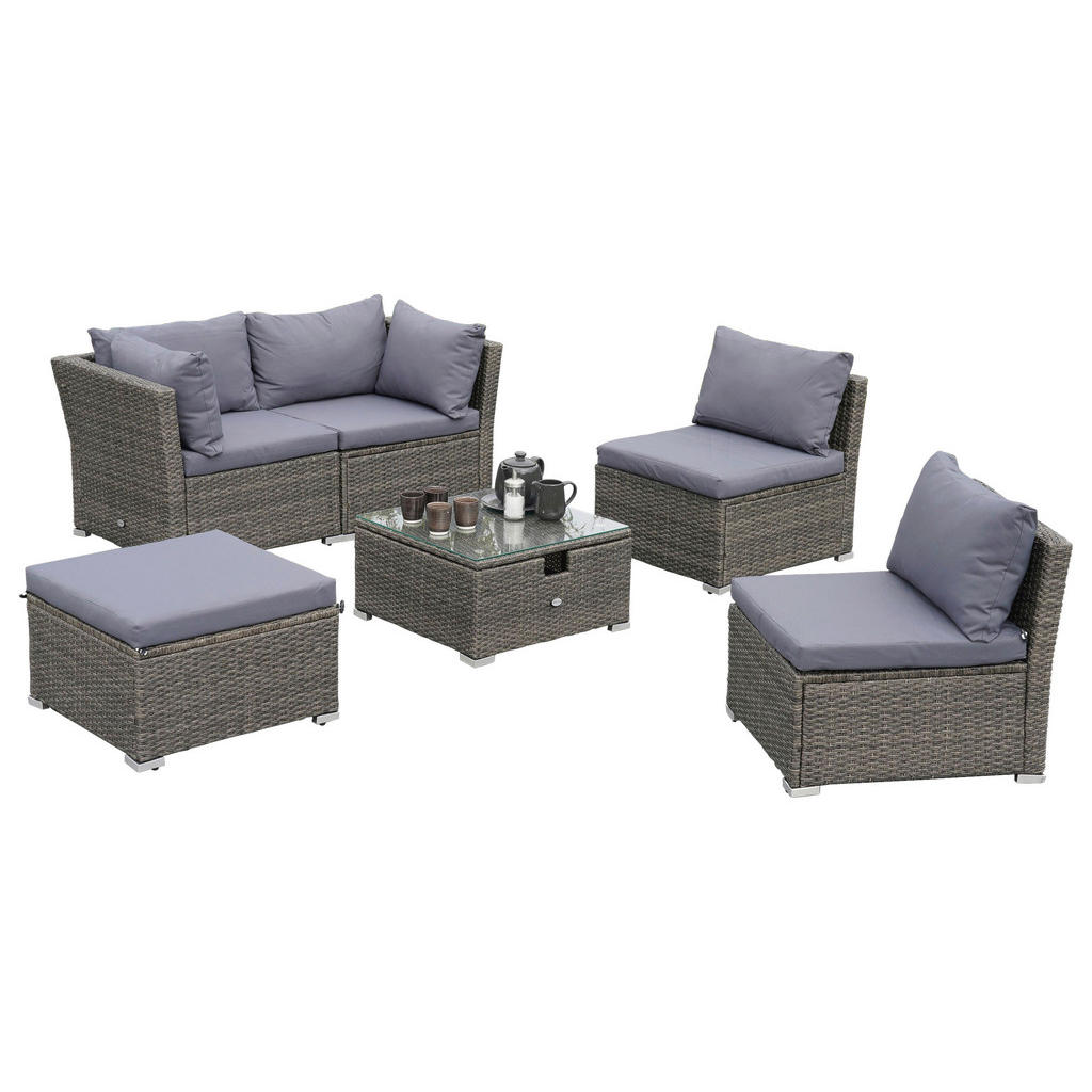 ZAHRADNÍ SEDACÍ souprava 14dílné, kov, plast, sklo, textil – ONLINE D,28465-262,GRAU – ECKBANK+KISSEN,DIV.POS. – TISCH-HÖHENVERSTELLB,STAHLGEST