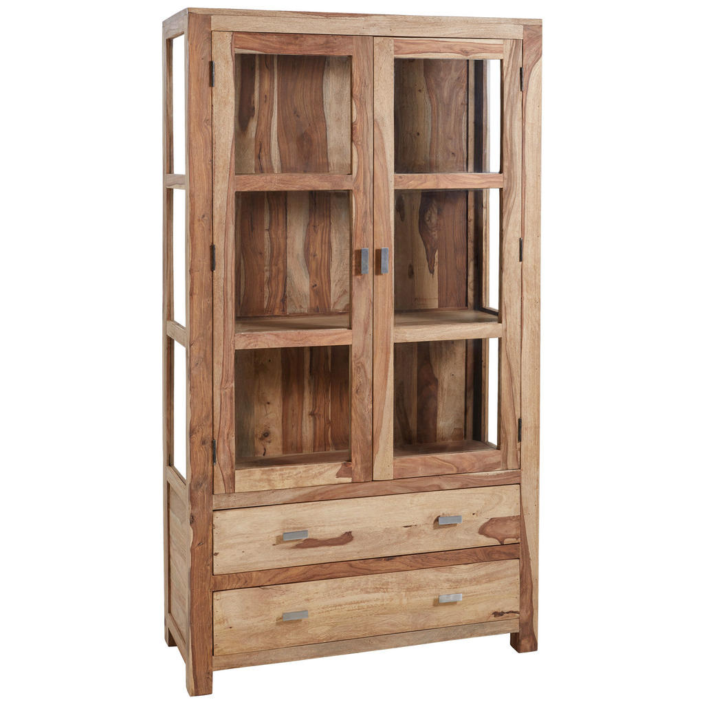 VITRÍNA, sheesham, barvy sheesham, 104/182/44 cm – TYP:66560, DŘEVO SHISHAM – MASIVNÍ, PŘÍRODNÍ, 2 DVEŘE, – 2 ZÁSUVKY