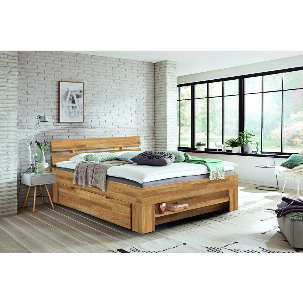 postel S ÚLOŽNÝM PROSTOREM, 140/200 cm barvy dubu – ONLINE AT,WILDEICHE MASSIV – GEÖLT,KEILVERZINKT, – INKL. 4 LADEN,LF: 140X200 CM