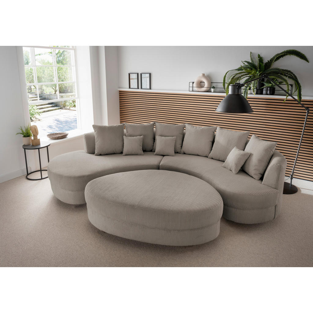 SEDACÍ SOUPRAVA, textil, šedavě hnědá – TYP:731OKIRHO3, 1,5OT-1,5KE+HO – CORD 4821 GRAU-BRAUN, – HALBRUND, SET INKL. HO, OT LI