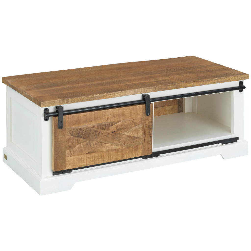 KONFERENČNÍ STOLEK, přírodní barvy, černá, bílá, dřevo, 60/120/45 cm – ONLINE AT,20-100221,WEIß,NATUR – SCHWARZ,MANGOHOLZ&SPERRHOLZ – SCHIEBETÜR,EISENSCHIEN SCHWARZ