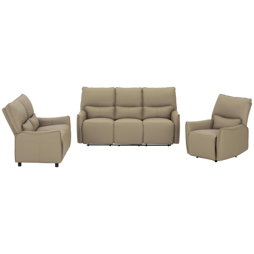 SEDACÍ SOUPRAVA 3+2+1, kůže, šedá, béžová – ONLINE AT, PG9711, FEDERKERN, – SIRÜ LEDER 622 STONE, KP PU, – MANUELLE RELAXFUNKTION