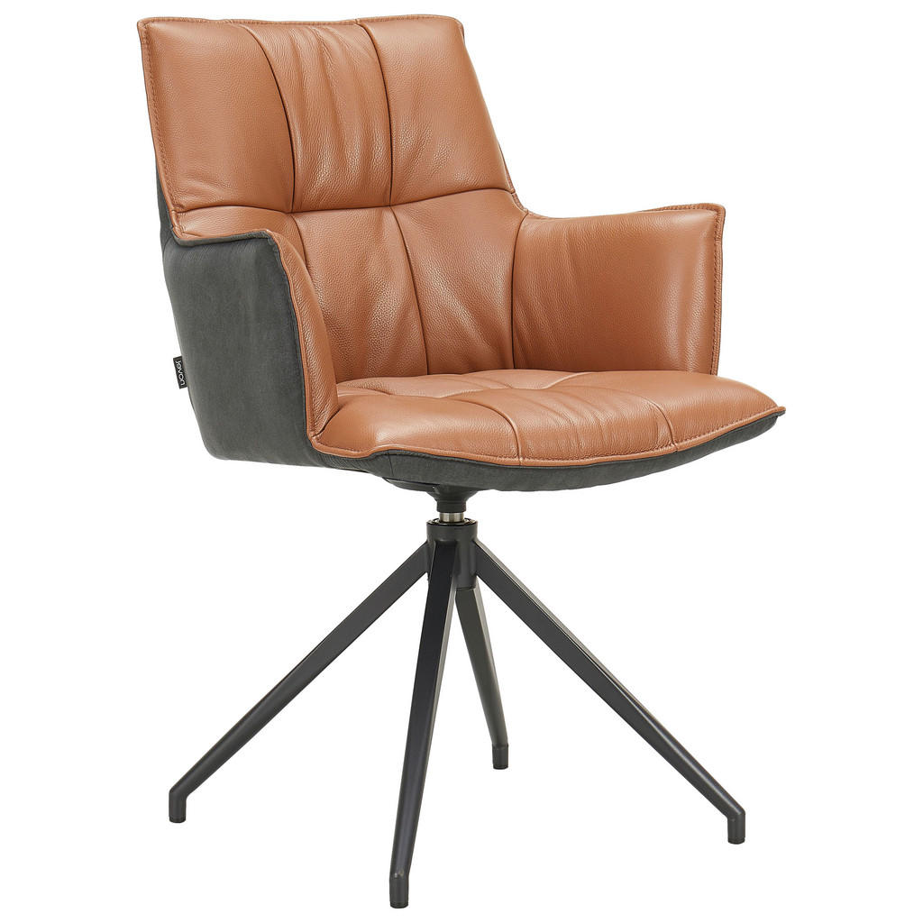 ŽIDLE S PODRUČKAMI, železo, mikrovlákno, černá, koňaková – TYP: D2105ZB, KŮŽE BARV.COGNAC – LÁTKA: ČERNÁ, PODNOŽ:ČERNÝ KOV – Š/V/H: 60,5/89,5/63 CM