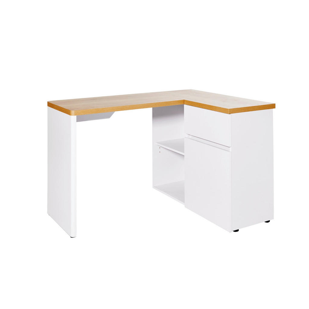 ROHOVÝ PSACÍ STŮL, bílá, barvy dubu, 117/90/76,2 cm – ONLINE AT – MATT, PLATTE: KERNEICHE – TYP: 25KE1, GESTELL: WEISS