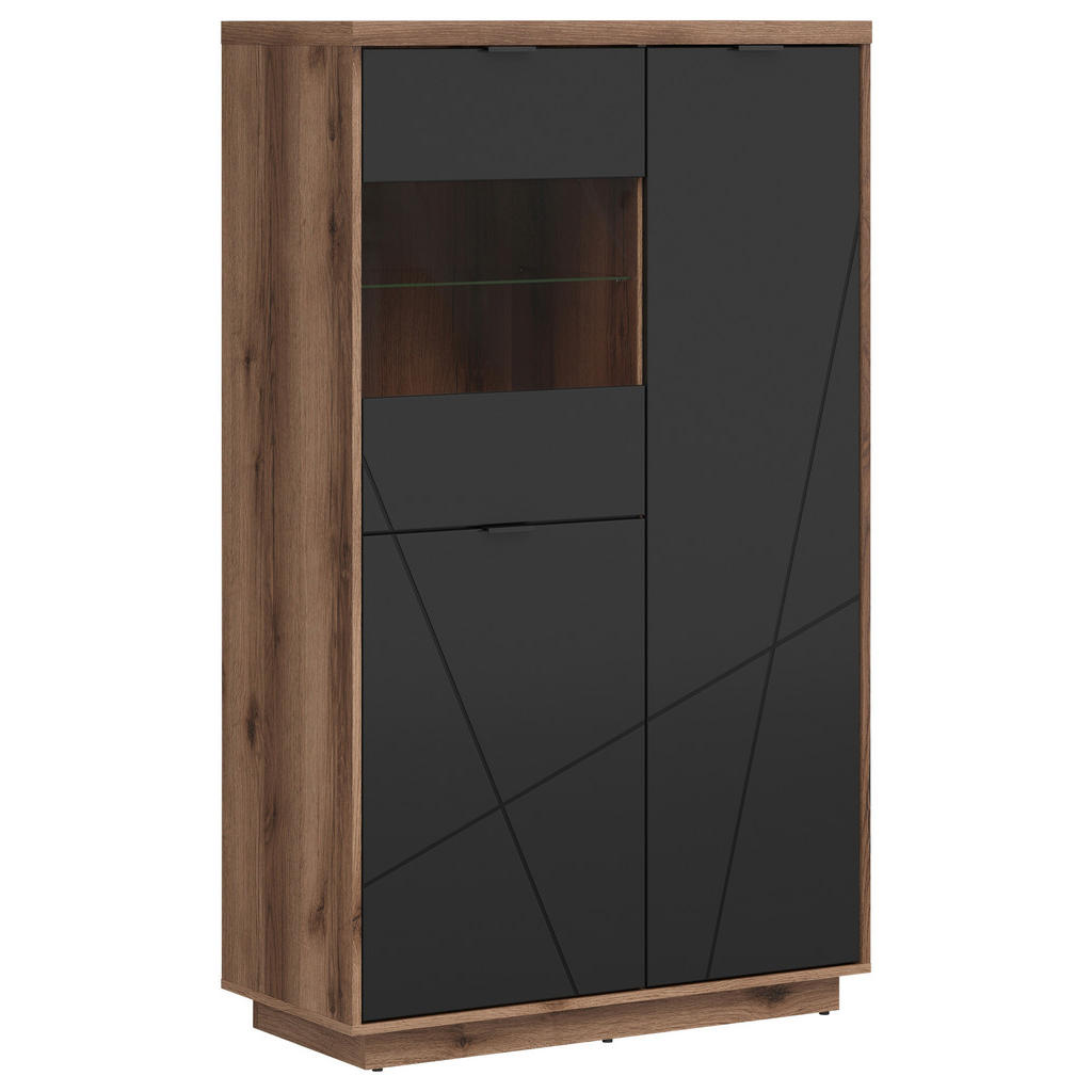 VITRÍNA, černá, barvy dubu, 94/157/42,5 cm – ONLINE AT,S471-REG2D1W-DDC/CAM – DELANO OAK / black MAT – 3 TÜREN, CHIPBOARD 15 MM, FOIL